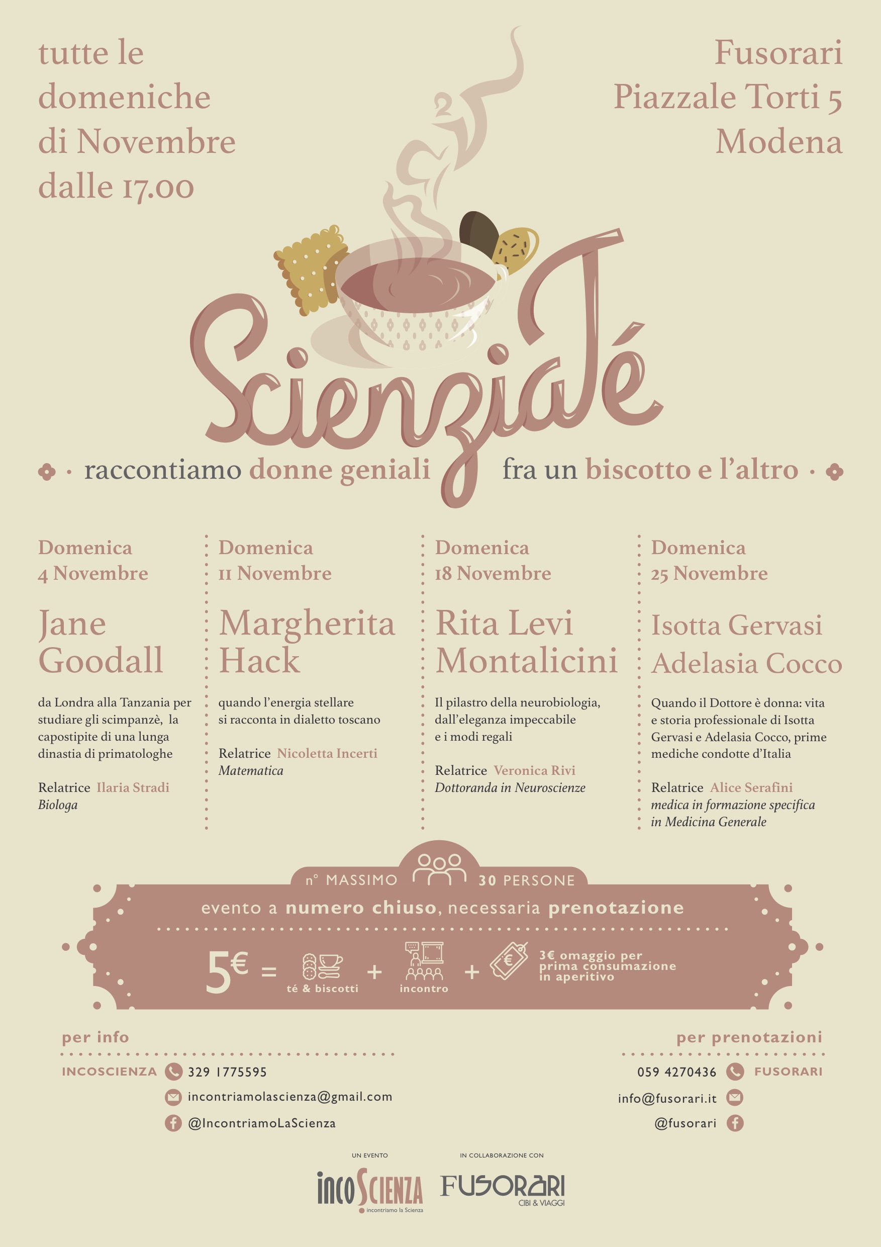 ScienzaTè – Raccontiamo donne geniali – tutte le domeniche dal 20 gennaio al 10 febbraio dalle 17 alle 18,30 – a cura di Inco.Scienza 16 Gennaio 2019