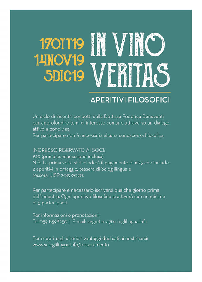IN VINO VERITAS aperitivi filosofici 17 ottobre | 15 novembre | 5 dicembre