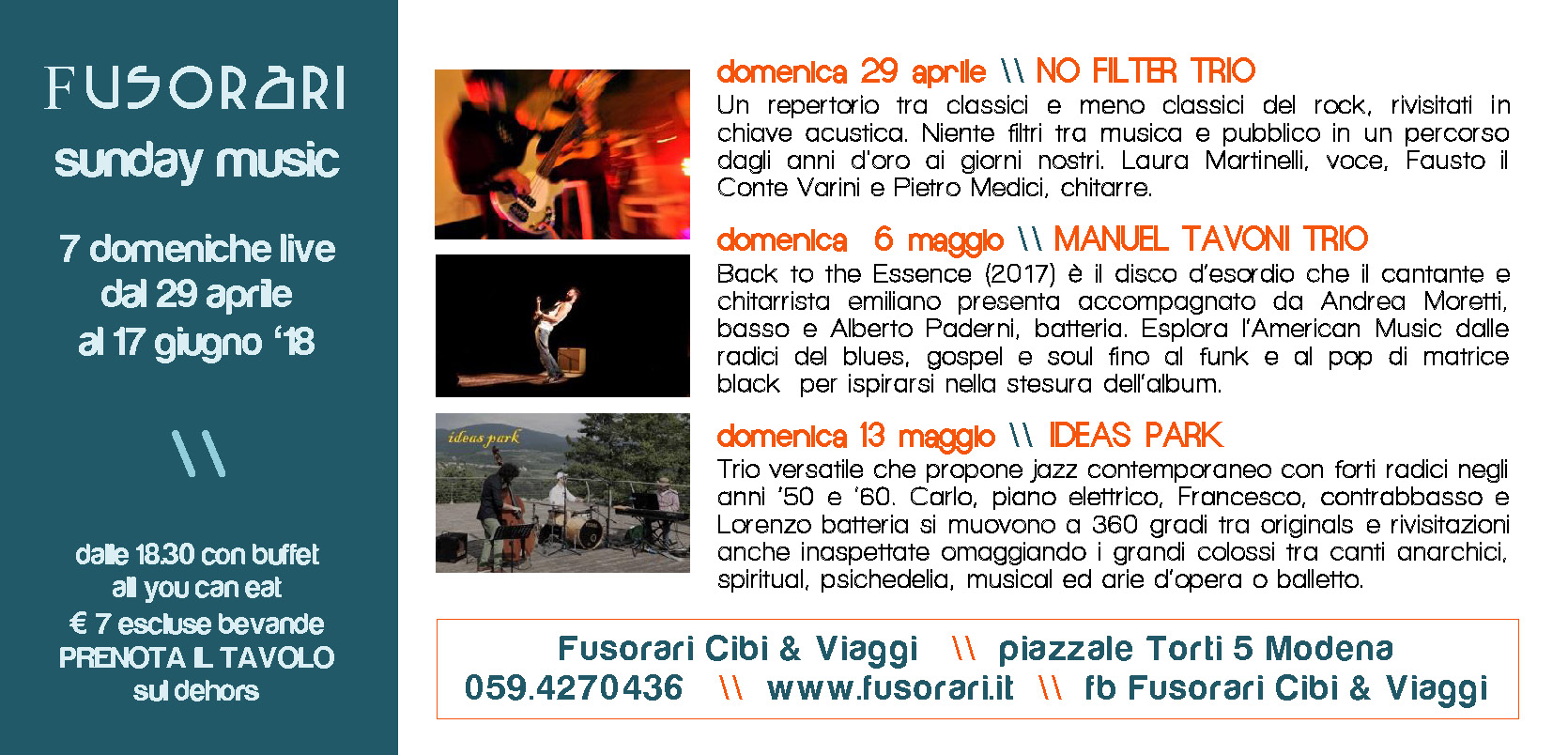 dal 29 aprile al 17 giugno FUSORARI SUNDAY MUSIC